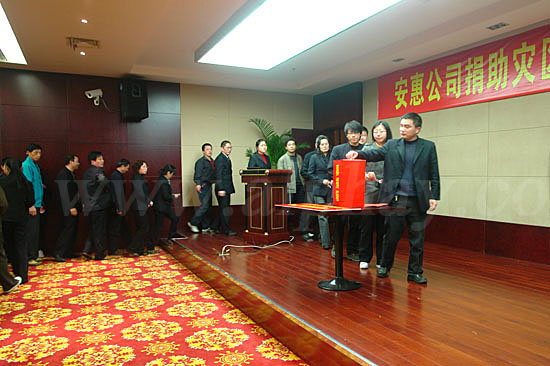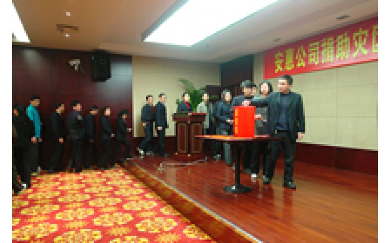 2008年5月12日,安惠公司全體員工和來自全國(guó)各地的安惠經(jīng)銷商踴躍為災(zāi)區(qū)人民捐款