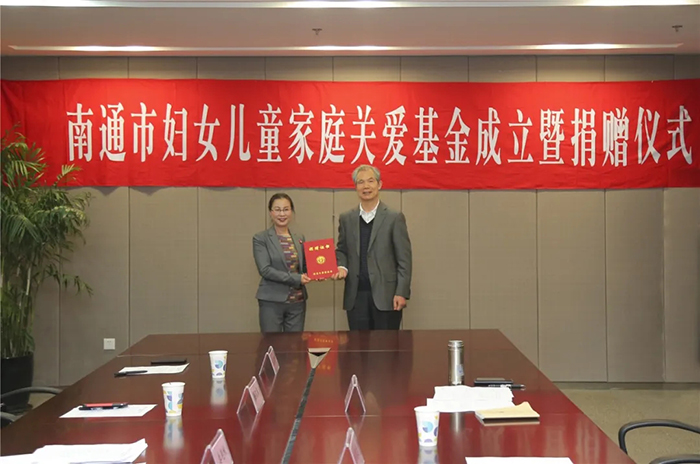 2020年4月20日,南通市婦女兒童家庭關愛基金成立。南通市女企業(yè)家協(xié)會副會長、安惠公司副董事長陸漢萍為基金注入第一筆愛心善款10萬元。